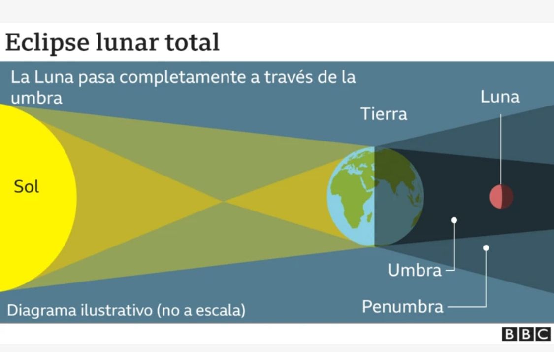 El Sol, la Tierra y la Luna estarán alineados. La Tierra pasará entre el Sol y la Luna, proyectando su sombra sobre nuestro satélite.