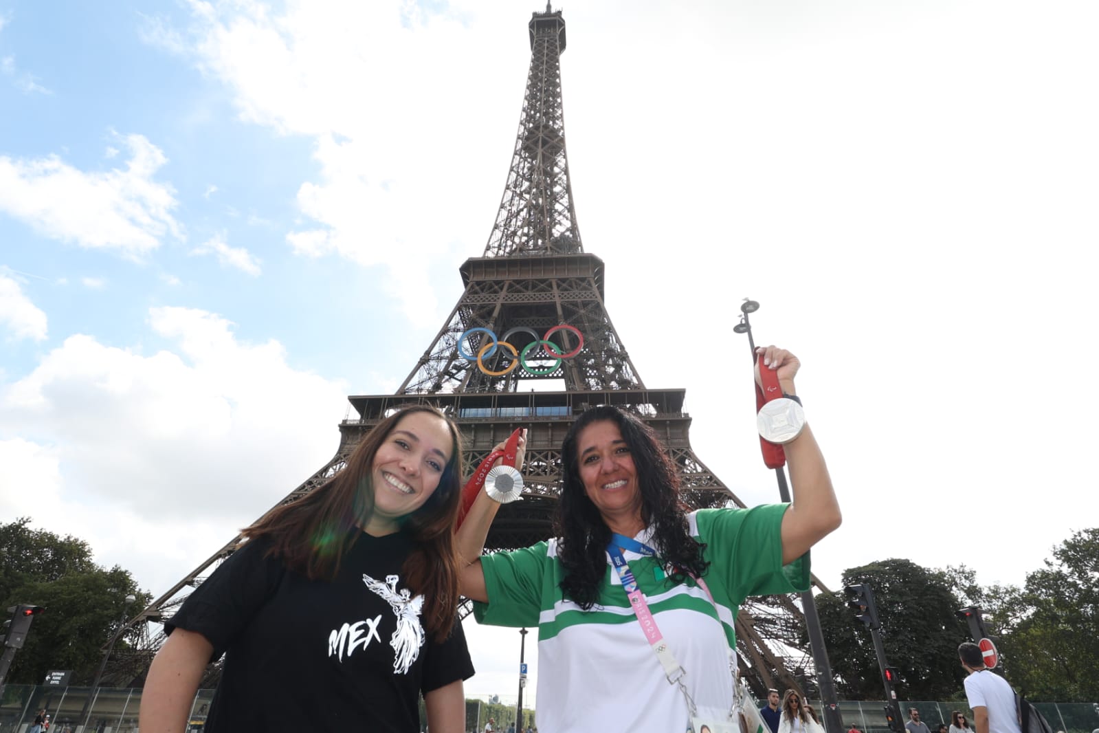 La para nadadora Haidee Aceves celebró en las inmediaciones de la Torre Eiffel las dos medallas que ganó en los Juegos Paralímpicos de París 2024.