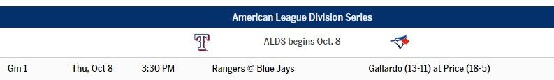 Yovani Gallardo pitcher de los Rangers de Texas, fue anunciado como su abridor para el primer juego de la Serie Divisional de la Liga Americana 2015, que se disputara el próximo jueves ante los Azulejos de Toronto.