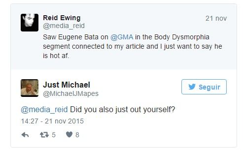 “Vi a Eugene Bata en @GMA es un segmento sobre la dismorfia corporal el cual estaba conectado a mi artículo y solo quiero decir que es muy atractivo”.