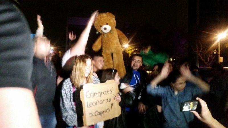 Seguidores de Leonardo DiCaprio salieron a las calles después de que obtuvo un Oscar como mejor actor por su participación en El Renacido