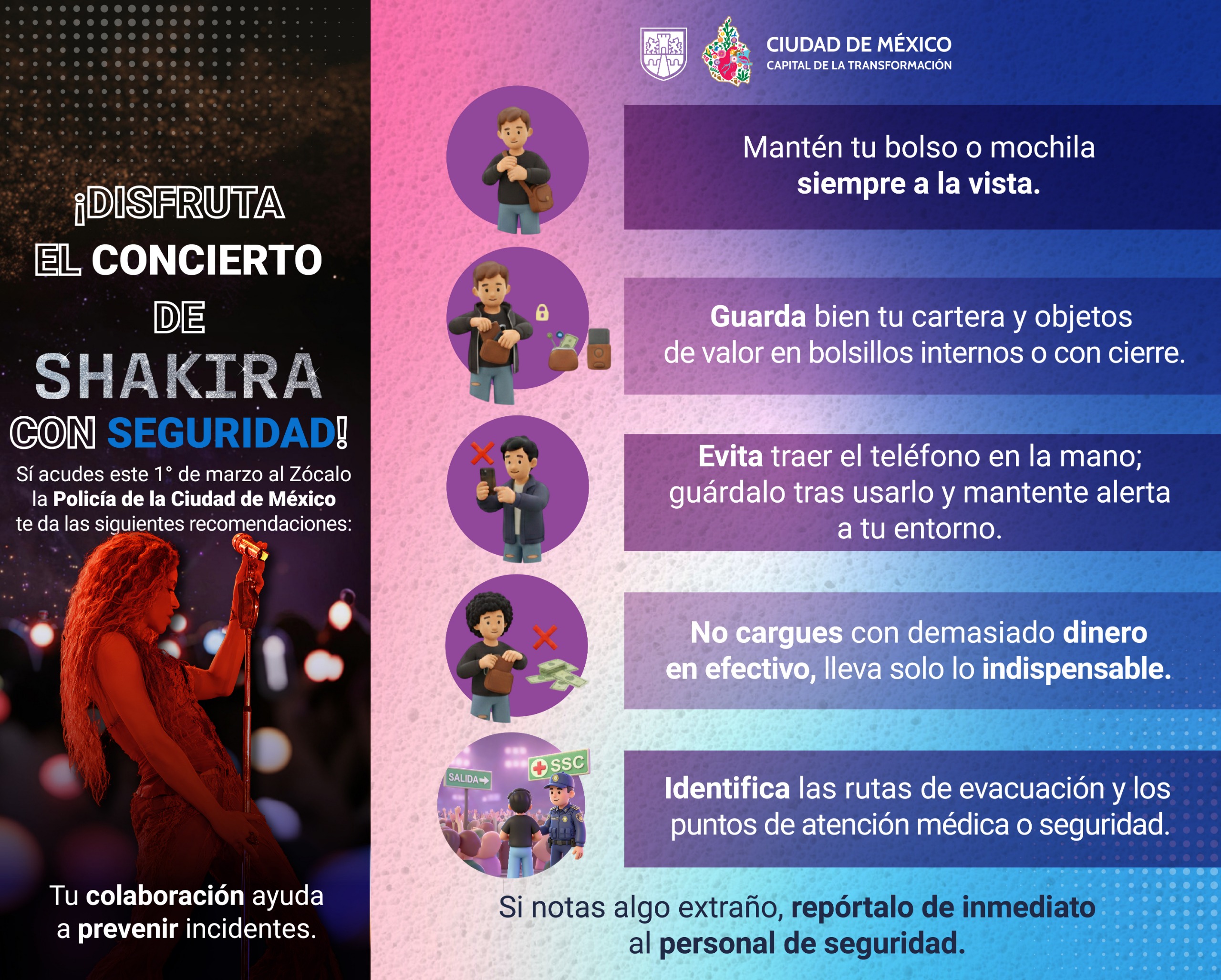 Durante el concierto de Shakira en el Zócalo se llevará a cabo un mega operativo de seguridad y un dispositivo vial, además de que implementará la Ley Seca