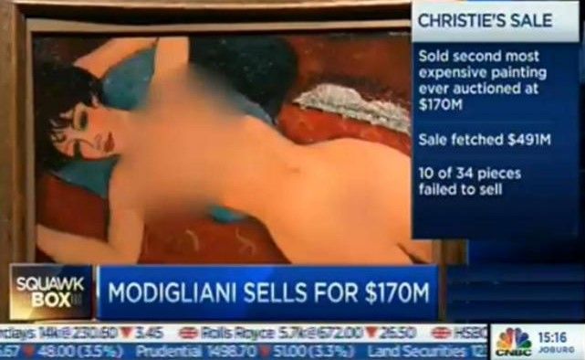 La cadena de televisión estadounidense CNBC fue criticada fuertemente en redes sociales por haber censurado la obra de Amedeo Modigliani, ‘No couché’, la cual fue subastada en 170.4 millones de dólares hace uno dìas y la cual compró el chino el Liu Yiqian.