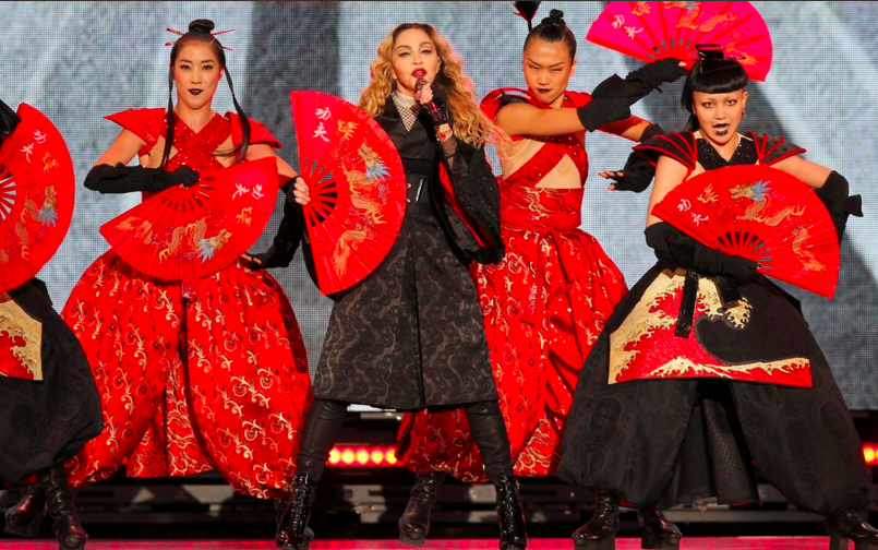 Después de saludar con un “¿México, cómo han estado?”, la artista retomó una enérgica coreografía acompañada de bailarinas vestidas de geishas y, posteriormente, nuevamente los samuráis que se amontonaron a su lado para coordinar los movimientos al ritmo de “Bitch, I’m Madonna”.
