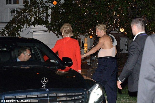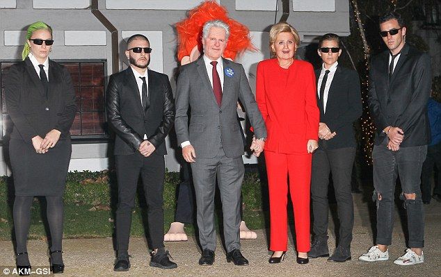 Perry llegó acompañada de dos hombres misteriosos vestidos como Bill Clinton y Donald Trump, dejando expectantes a los fotógrafos de espectáculos que se encontraban presentes, sobre todo porque querían saber quién de los dos era su actual pareja, el también actor Orlando Bloom.