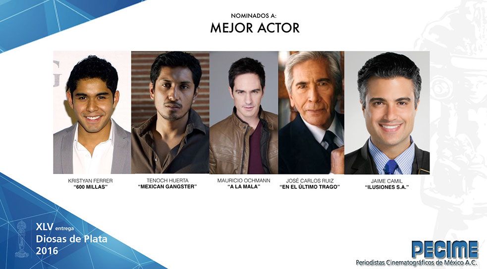 Kristyan Ferrer (600 Millas), Tenoch Huerta (Mexican Gangster), Mauricio Ochmann (A la mala), José Carlos Ruiz (En el último trago) y Jaime Camil (Ilusiones S.A.) pelearán por el premio a mejor actor.