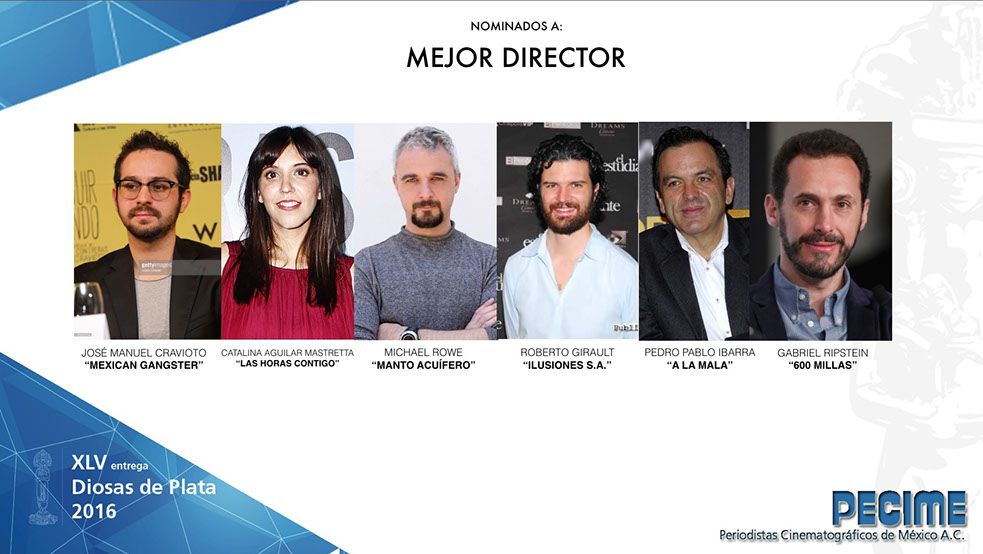 En la categoría a mejor película contienden seis largometrajes de ficción: “Mexican Gangster”, “Las horas contigo”, “Manto acuífero (Rowe)”, “Ilusiones S.A.”, “A la mala” y “600 millas”, cuyos realizadores también están nominados en la sección a mejor director.