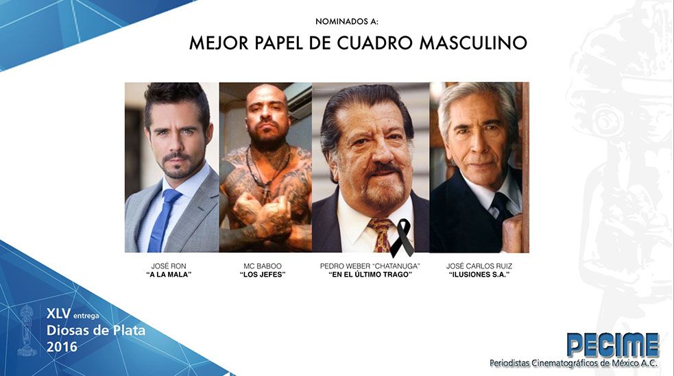 Destaca la nominación a Cuadro Masculino del actor Pedro Weber “Chatanuga”, recientemente fallecido, por su interpretación en En el último trago (Jack Zagha Kababie, 2014); así como la asignación del nombre de la actriz Silvia Pinal a la Diosa de Plata que reconoce a la Revelación Femenina en cine, en la que este año se encuentra nominada Andrea Ortega-Lee por su papel en “Ella es Ramona” (Hugo Rodríguez, 2015), presente durante la rueda de prensa.