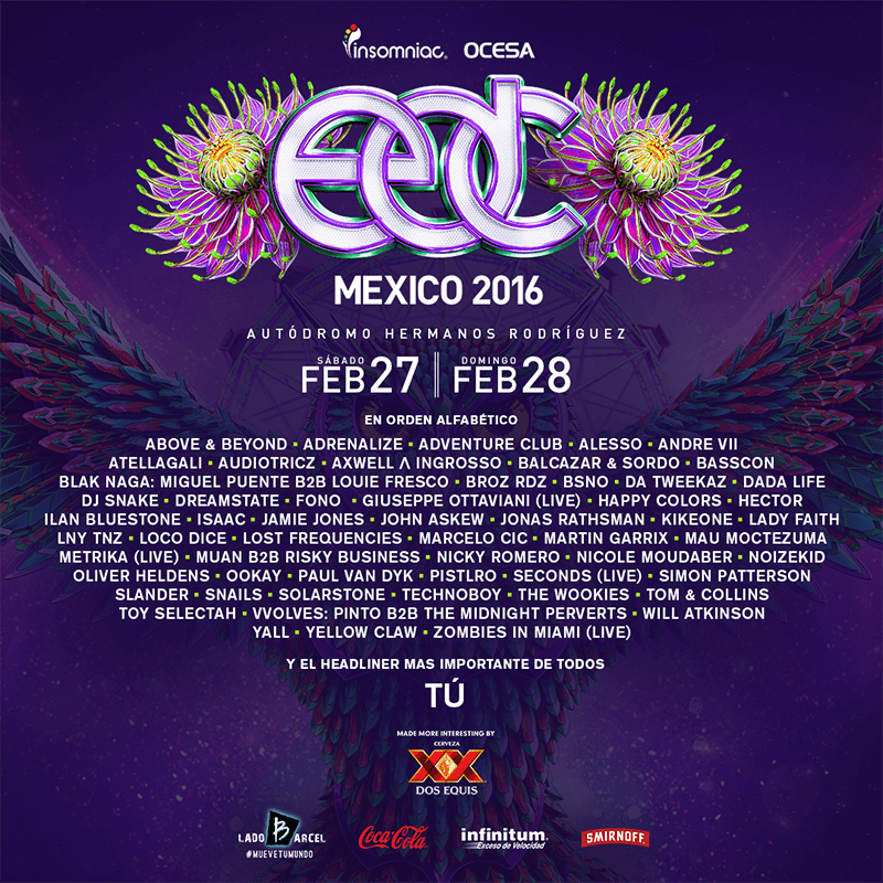 La tercera edición del Electric Daisy Carnival (EDC) México 2016 ya tiene cartel oficial con la alineación de los mejores exponentes de la música electrónica los próximos 27 y 28 de febrero de 2016 en la Ciudad de México.