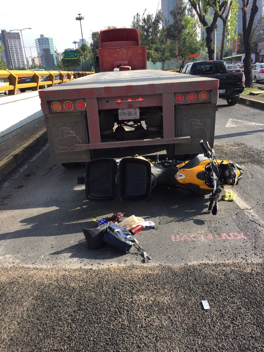 A través de su cuenta de Twitter, compartió una imagen de su moto, la cual impactó contra un camión de carga en la incorporación de Avenida Chapultepec saliendo de Circuito Bicentenario, al poniente de la Ciudad de México.