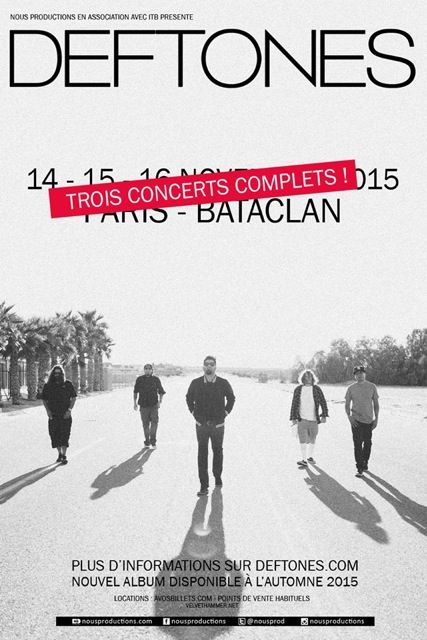 La misma decisión ha sido tomada por Deftones, quienes tenían que actuar en Bataclan tres días seguidos: esta noche, pasado mañana y también el lunes.