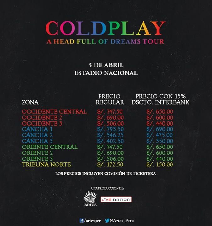 Precios de los boletos en la gira latinoamericana de Coldplay - Peru-precios