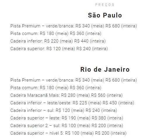 Precios de los boletos en la gira latinoamericana de Coldplay - brasil-precios