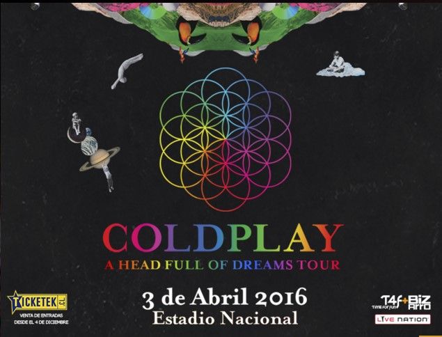 La segunda parada de Coldplay será el domingo 3 de abril de 2016 en el Estadio Nacional de Santiago.