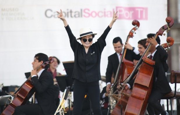 Asimismo, Yoko Ono invitó a los mexicanos a actuar en favor del bien común, originando y trasmitiendo mensajes de optimismo. “Los quiero mucho, los quiero mucho”, reiteró con alegría la artista.