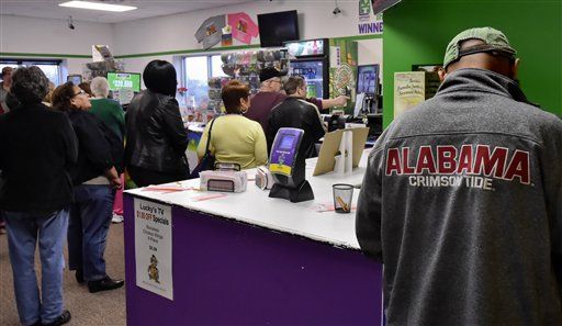 Clientes de Alabama esperan en línea para adquirir boletos de lotería de Powerball. Foto de AP
