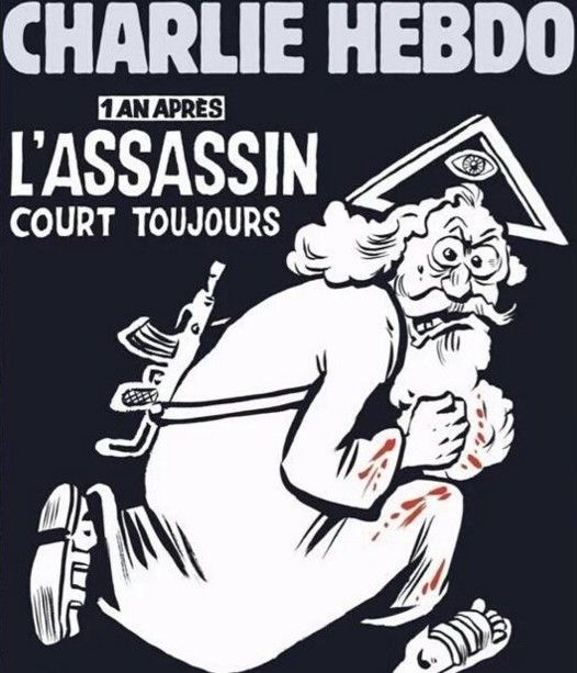 Esta publicación saldrá a la venta el miércoles, bajo el título “Un año después, el asesino sigue corriendo”, con la caricatura de un dios que va a la carrera con las manos manchadas de sangre y con una metralleta a la espalda.