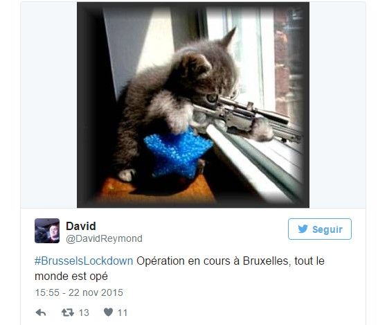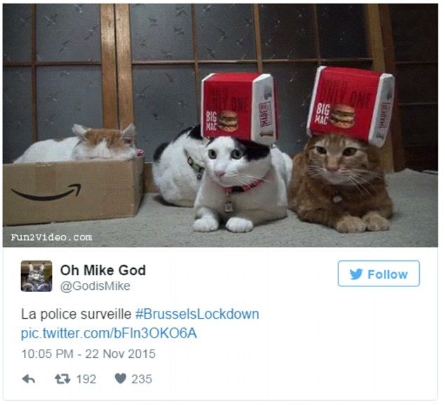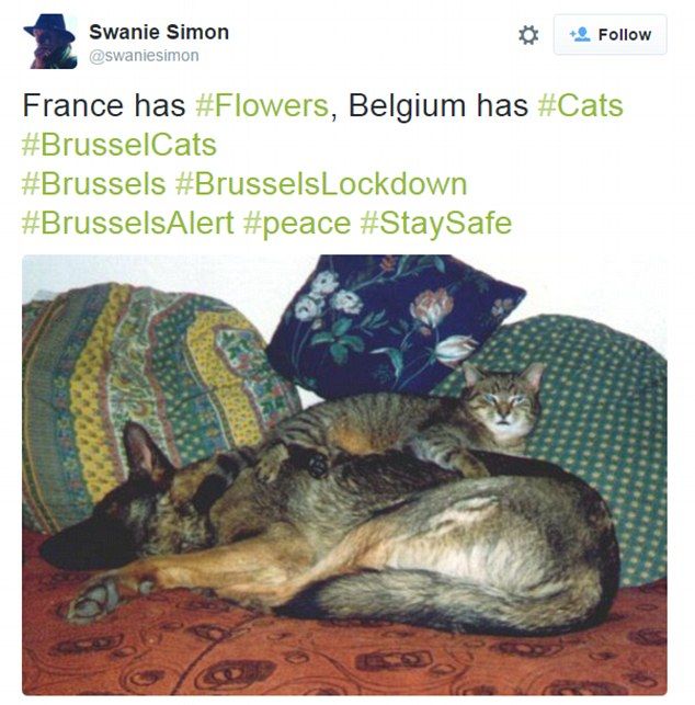 Entre los mensajes se podía leer: “Tenemos que apoyar a la Policía, (los terroristas) pueden estar leyendo esto”. También “Operación terminada, los gatos pueden volver”, “Los gatos francesas son belgas esta noche” y “No hay ni un gato por la calle, están todos en Twitter”, entre otras.
