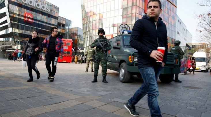 Fotos en las redes sociales mostraron una fuerte presencia policial frente a un centro comercial Sanlitun, una sede de importantes marcas internacionales.