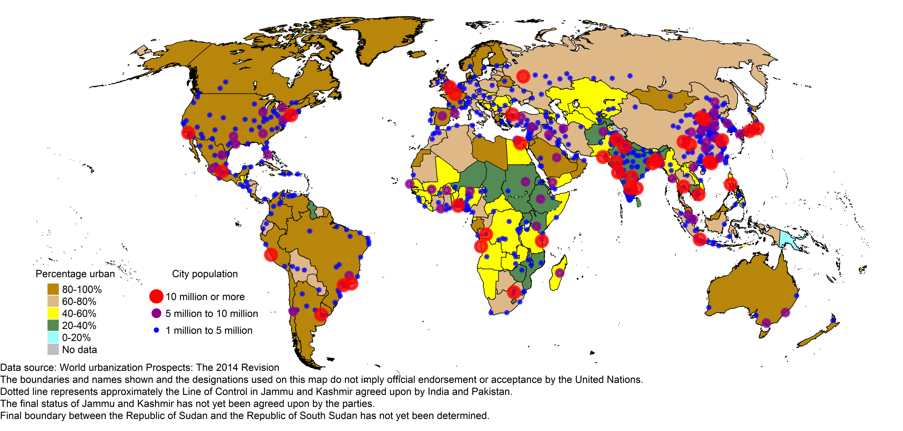 De acuerdo con el Departamento de economía y asuntos sociales de las Naciones Unidas, para el 2030, el mundo contará con 41 megaciudades que tendrán cada una, de acuerdo a la consideración de las mismas, más de 10 millones de habitantes.