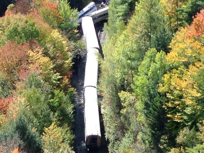 El accidente ocurrió a 16 kilómetros al suroeste de Montpelier, en la localidad de Northfield, mientras que cubría el servicio desde la frontera con Canadá a Washington D.C. con una velocidad de 95 kilómetros por hora.