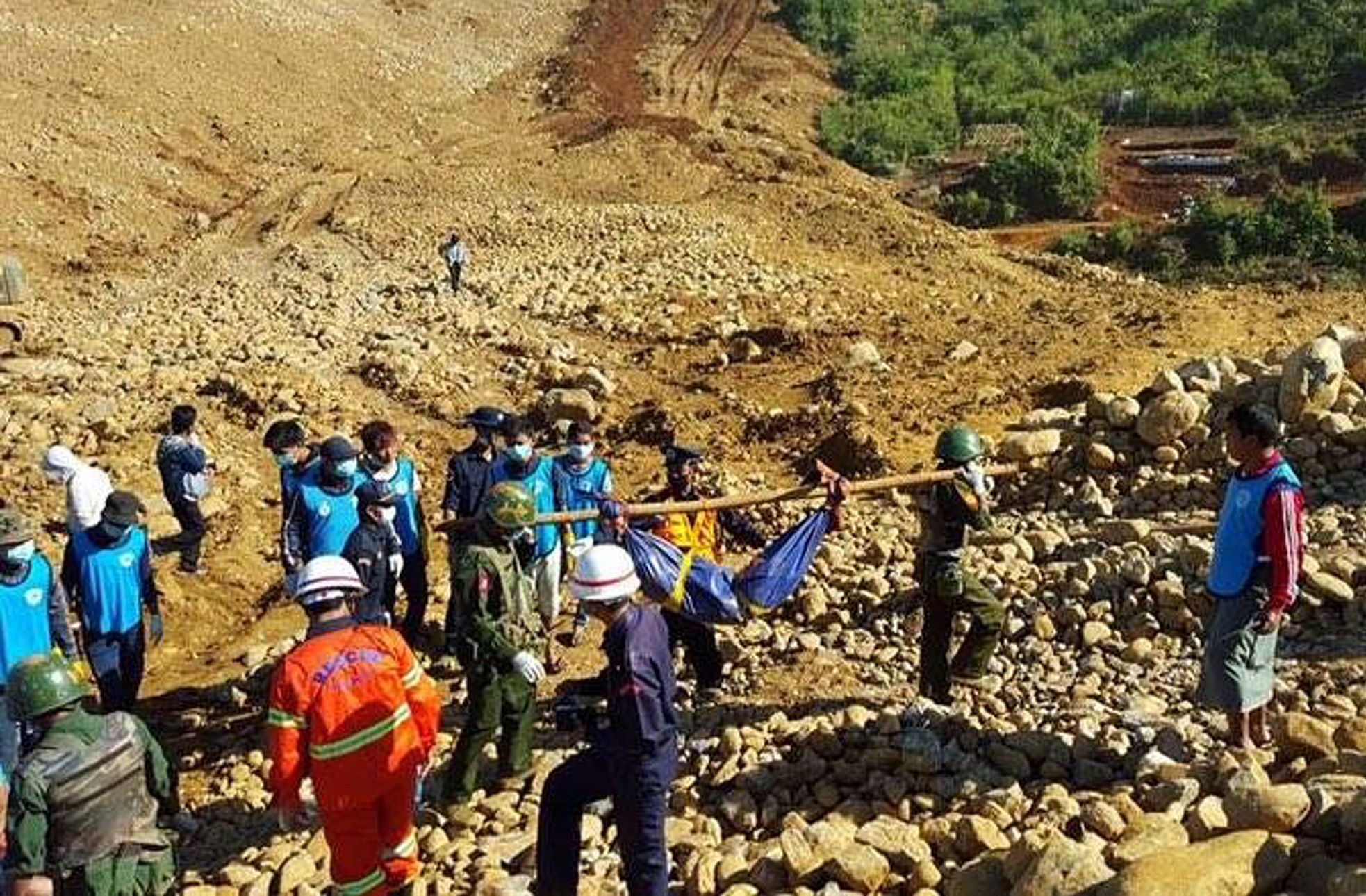 Lamai Gum Ja, un líder de la comunidad local, dijo que el deslave también había arrasado algunas viviendas en la base del vertedero de la mina y estimó que además de los muertos habría entre 100 y 200 desaparecidos.