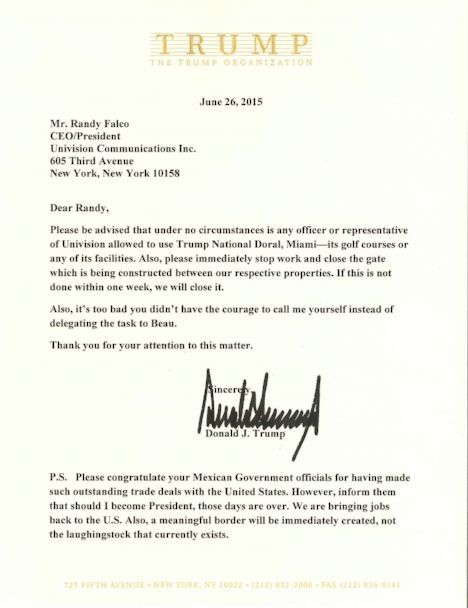 Donald Trump prohíbe entrada de empleados de Univisión a sus propiedades - Donald-Trump-carta
