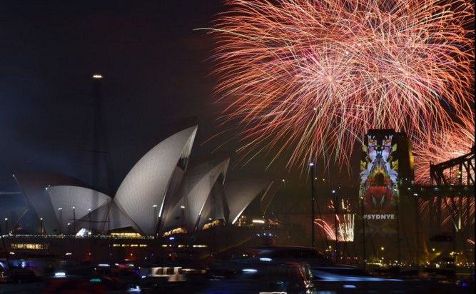 La ciudad australiana de Sydney recibió el Año Nuevo con su famoso espectáculo pirotécnico, que retransmitieron en directo numerosos canales de televisión.