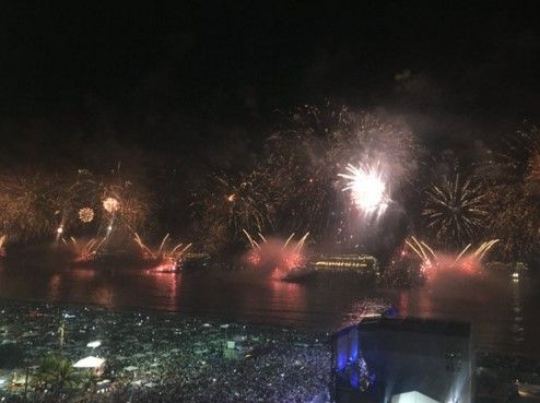 La principal fiesta de Río de Janeiro se realizó en la playa de Copacabana que tuvo dos temáticas: el centenario de la samba y el inicio del año para la ciudad que recibirá los Juegos Olímpicos en agosto. Se calcula que más de 2 millones de personas asistieron a las playas para la celebración.