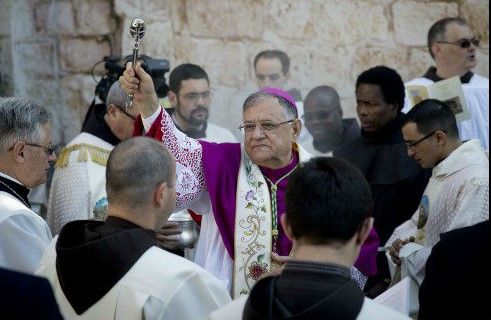 El patriarca latino Fuad Twal encabezó una procesión desde su sede en Jerusalén hasta Belén, atravesando el muro de hormigón erigido por Israel hace una década en medio de una ola de ataques suicidas. Los palestinos lo consideran un robo de tierras que ha perjudicado la economía de la ciudad.