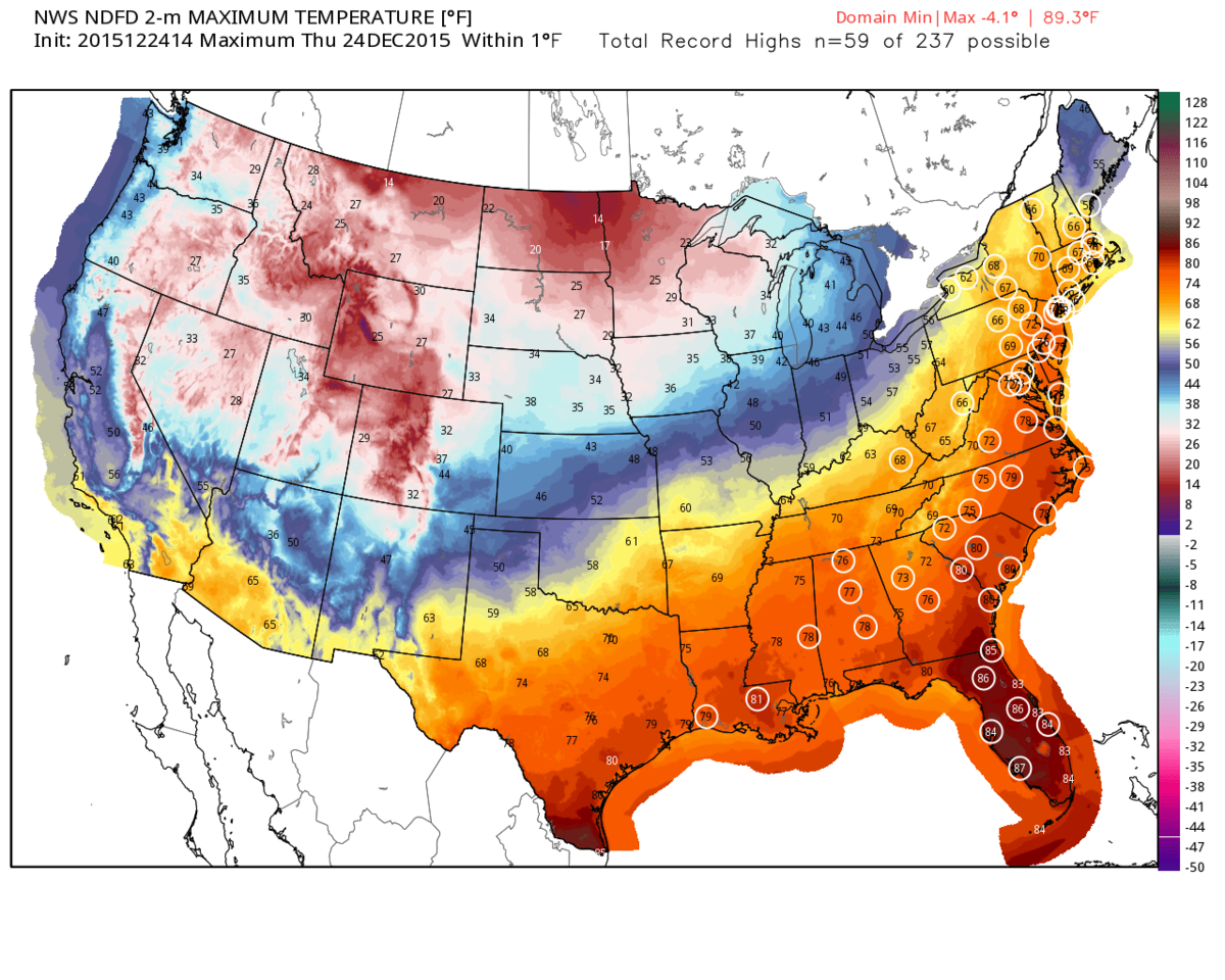 Sin duda este es el año más caluroso que se tiene registrado en la historia. Si no lo cree, solo vea las temperaturas que marcan el noreste mexicano y la costa este estadounidense en la víspera de Navidad.