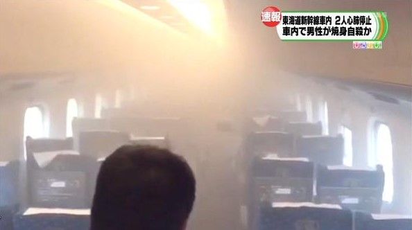 Un pasajero se prendió fuego en el Shinkansen, el tren bala japonés, el cual hizo una parada de emergencia cerca de la ciudad Odawara, gracias a que un pasajero activó la palanca de emergencia. El tren iba de Tokio hacia Osaka.