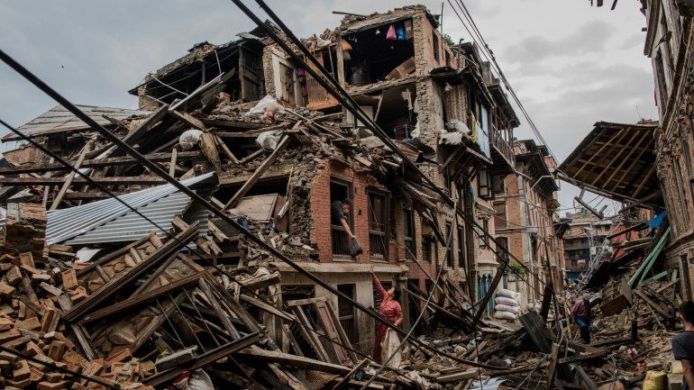 Nepal, abril. Ciudadanos de Nepal recuperan las pertenencias de viviendas cuatro días después de un terremoto de magnitud 7,8 que sacudió el país y dejó más de 9.000 muertos.