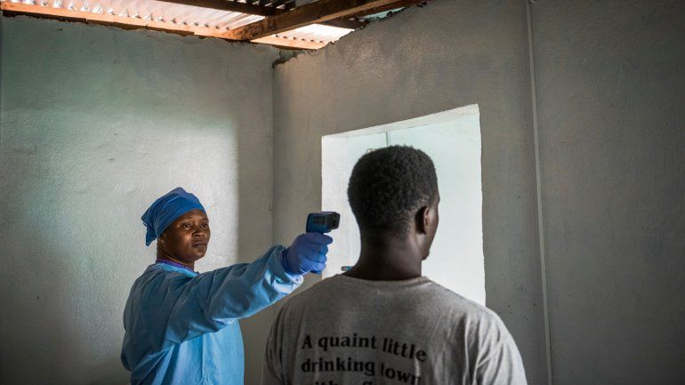 La de febrero. Una enfermera usa un termómetro infrarrojo para comprobar la temperatura de un paciente en la clínica de salud Logan Town, en Liberia. La Organización Mundial de Salud declaró la nación libre de ébola en mayo.