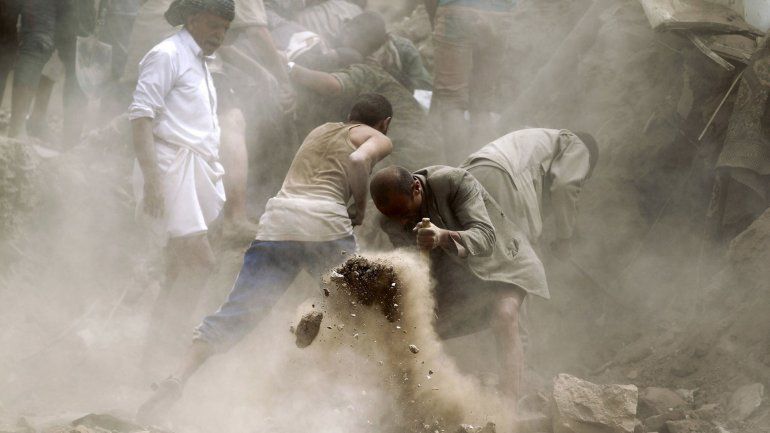 Explosión yemení en junio. Yemeníes buscan sobrevivientes en un sitio declarado Patrimonio de la Humanidad por la Unesco después de una explosión que los testigos dijeron que fue causada por ataques aéreos sauditas. Arabia Saudita negó su responsabilidad.