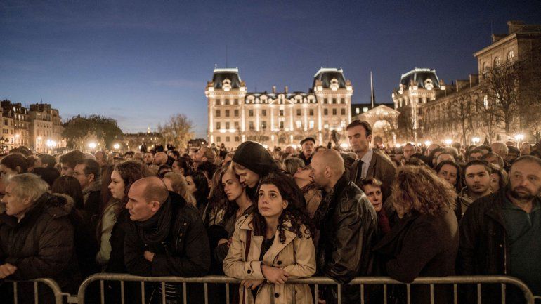 París de nuevo. Cientos de franceses se reunieron frente a la Catedral de Notre Dame durante la misa para conmemorar a las víctimas de los ataques terroristas del 13 de noviembre, cuando murieron 130 personas.