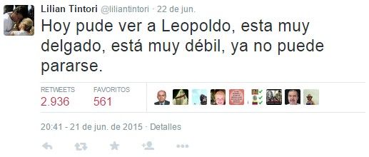 Lilian Tintori ya había publicado mensajes en redes sociales en donde afirmaba que su esposo ya estaba muy débil tras 30 días de huelga de hambre.