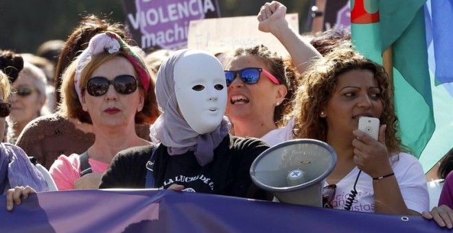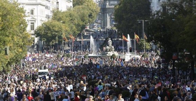 Miles de personas de todas partes de España se reunieron el sábado en Madrid para marchar contra la violencia doméstica.