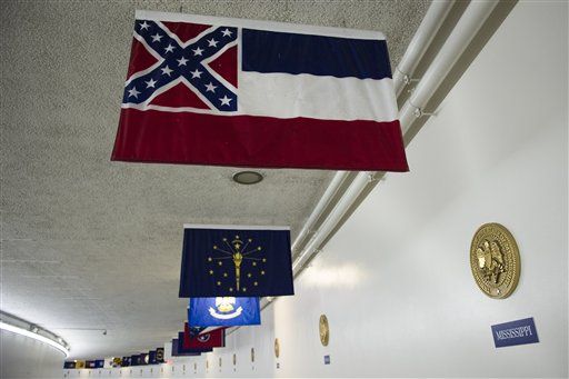 La bandera de Mississippi muestra el símbolo de la Confederación. Foto de AP