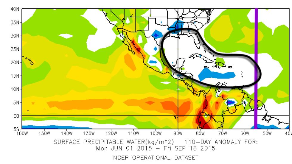 Si bien durante la presente temporada de huracanes del Atlántico han surgido tormentas tropicales, en lo que va del 2015 no ha aparecido ningún huracán desde la cuenca del Atlántico Occidental.