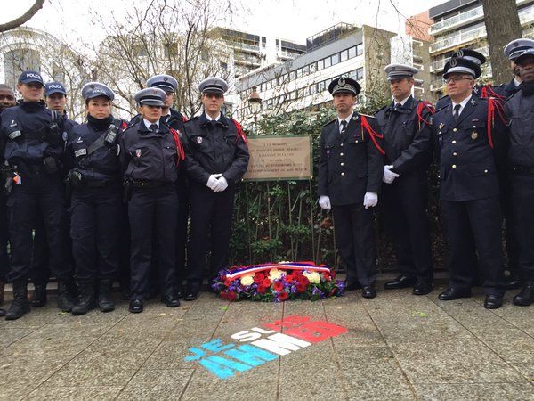 La segunda placa fue develada en el bulevar Richard Lenoir, al lado de la antigua sede de la revista, donde fue abatido el policía Ahmed Merabet durante los atentados.