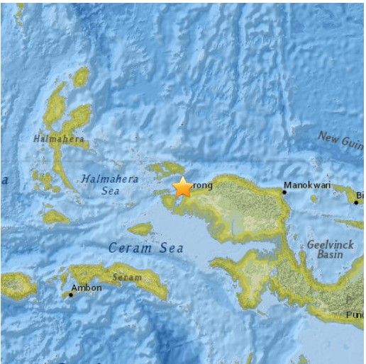 El epicentro del sismo se localizó en el Océano Pacífico a 29 kilómetros al norte de Sorong