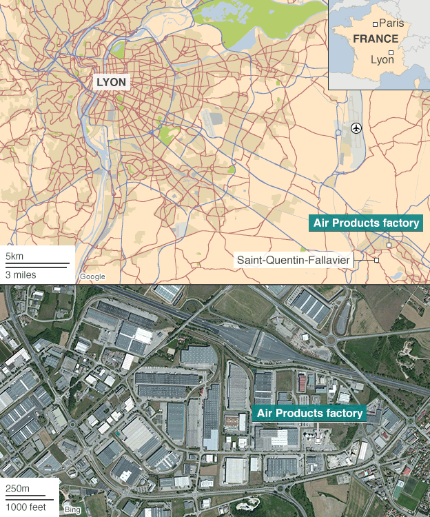 En conferencia de prensa, el presidente francés Francois Hollande confirmó que dos terroristas atentaron en la fábrica al estrellar su vehículo en ella. “No tenemos duda de que el ataque fue para explotar el edificio. El ataque tiene todas las características de un atentado terrorista”.