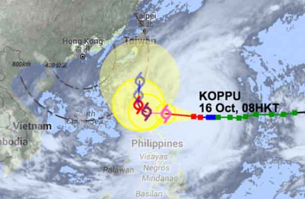 Las imágenes de satélite muestran que el tifón parece estar perdiendo fuerza en su ojo, indicó el jefe de la oficina meteorológica y agregó que “Koppu” avanza a un ritmo lento de cinco kilómetros por hora a través del norte montañoso y saldrá de la isla principal Luzón el miércoles próximo.