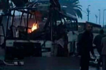 El autobús quedó destruido tras el atentado – Foto de Twitter