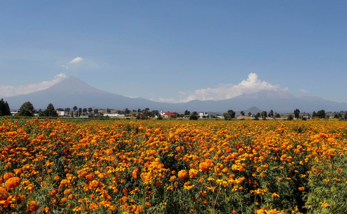 Los campos de flor de cempasúchil se convierten en un espectáculo visual y sensorial en la antesala al tradicional del Día de Muertos, cuando los productores del municipio de Atlixco, Puebla, comienzan a cortar las flores para llevarlas a todos los rincones del país y con ellas -y su olor peculiar- llamar a las almas de vuelta a sus hogares.