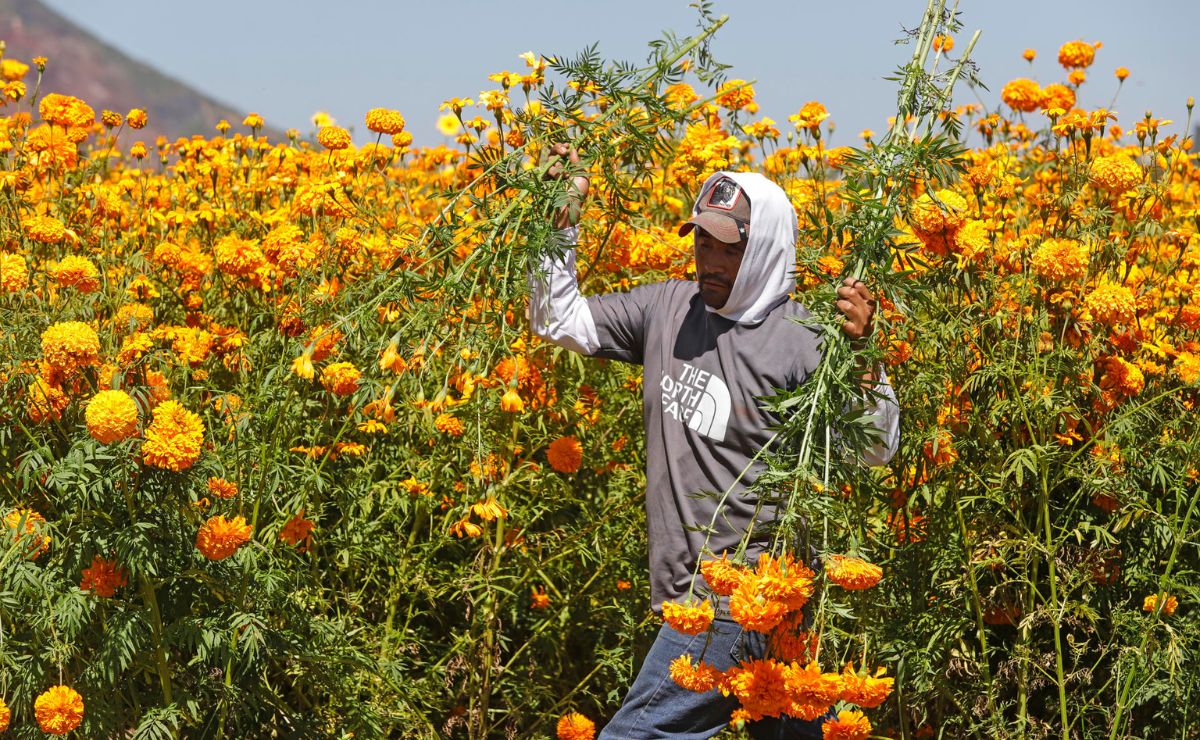 En largas jornadas y con un cuchillo curvo, los trabajadores cortan y eligen las mejores flores, aquellas que no estén maltratadas, ya que su objetivo será adornar las ofrendas o altares donde se coloca la comida y los objetos favoritos de las personas fallecidas a las que se honrará su memoria este fin de semana, como marca la tradición en el país norteamericano.