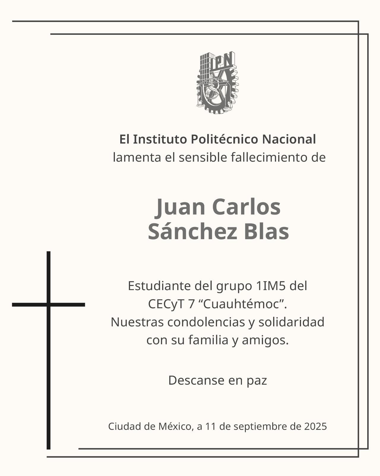 Otra de las víctimas del accidente en Iztapalapa fue identificada como Juan Carlos Sánchez Blas, estudiante del Instituto Politécnico Nacional (IPN).