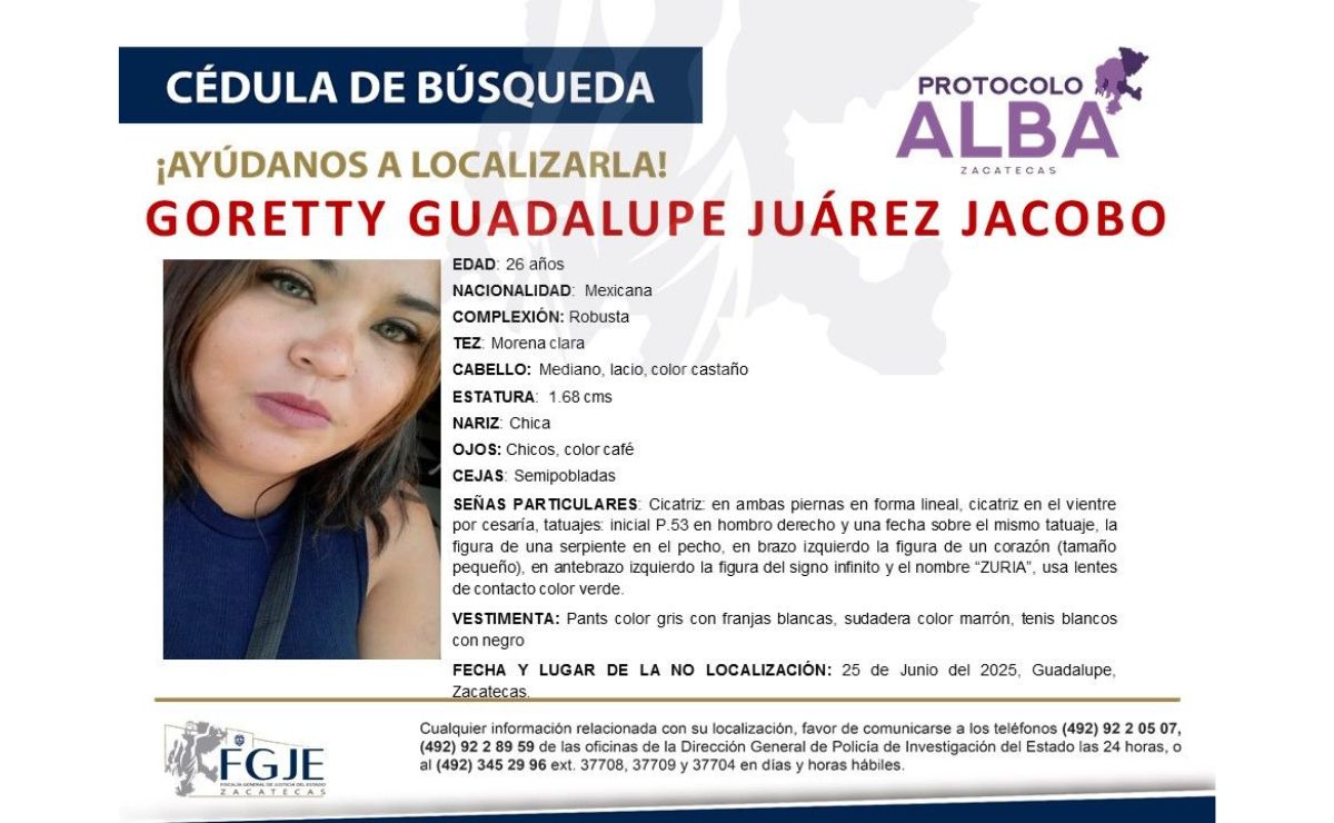 La joven de 26 años de edad fue vista por última vez el 25 de junio pasado, en el municipio de Guadalupe.