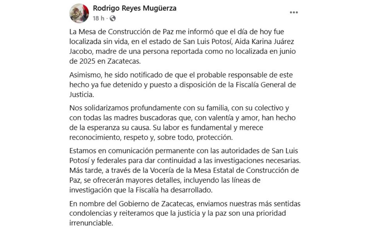 El secretario general de Gobierno en Zacatecas, Rodrigo Reyes Mugüerza, informó los hechos.